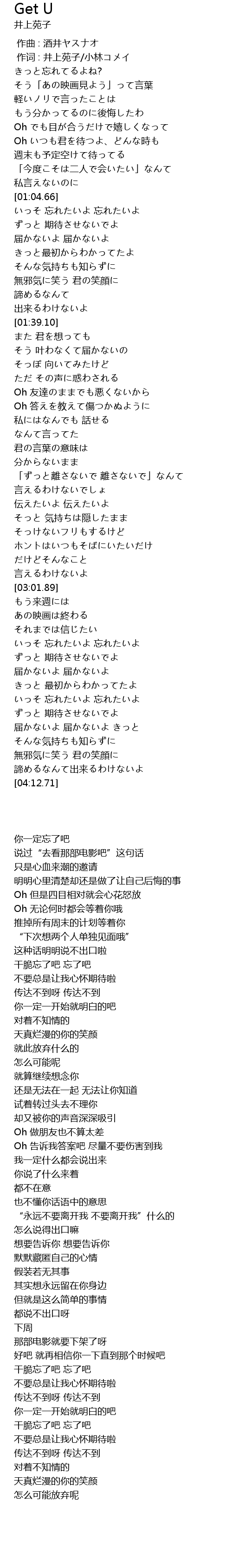 | [00:01.00] | 作词 : 井上苑子/小林コメイ |