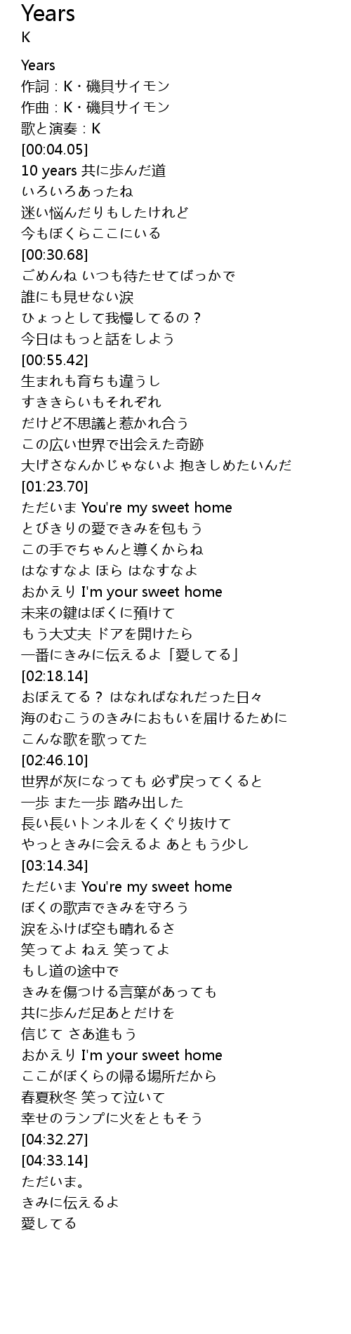| [00:00.00] | Years |