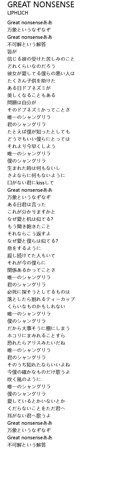 - GREAT NONSENSE