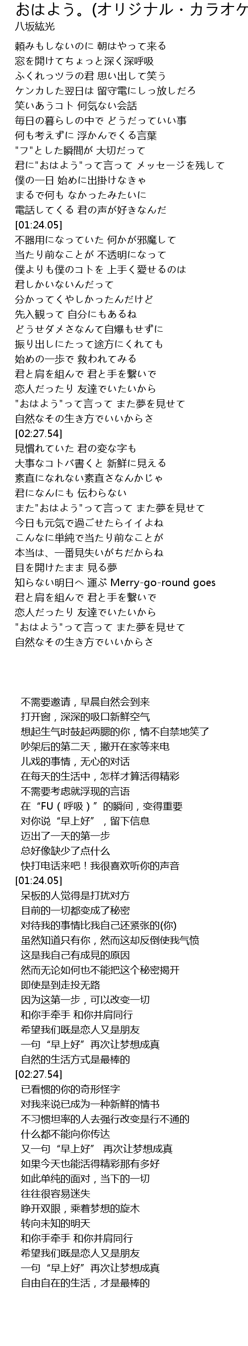 | [01:02.96] | 君に"おはよう"って言って メッセージを残して |