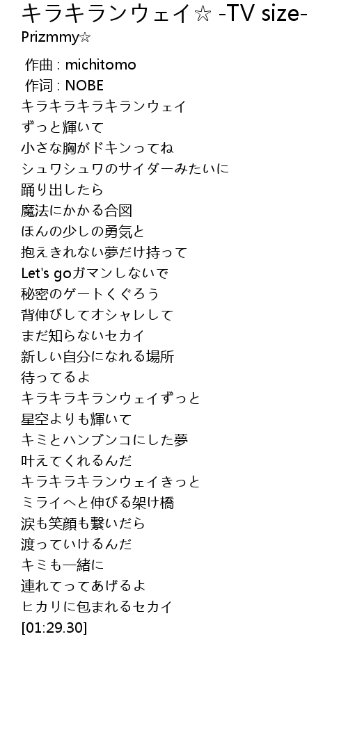| [01:25.07] | ヒカリに包まれるセカイ |