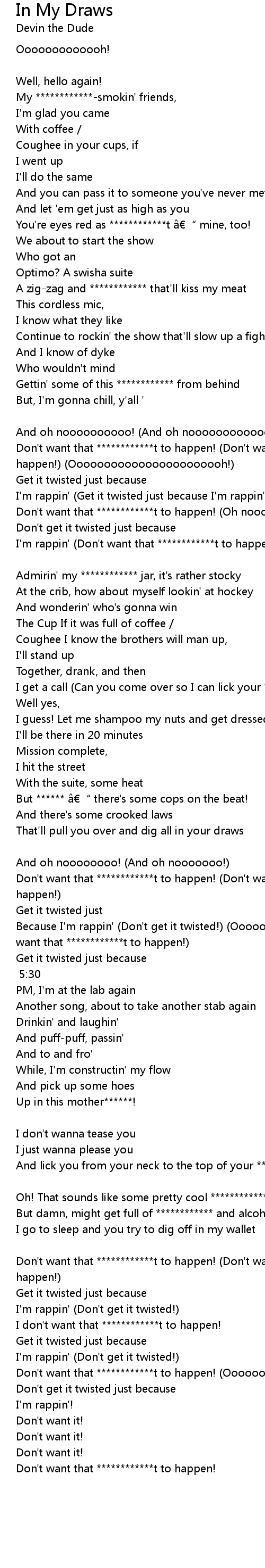| Cause she might wanna start wearin' my draws Devin the Dude Tony Mack: | |
