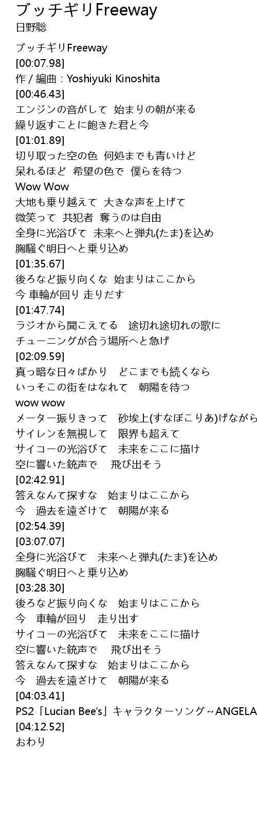 | [00:02.28] | ブッチギリFreeway |