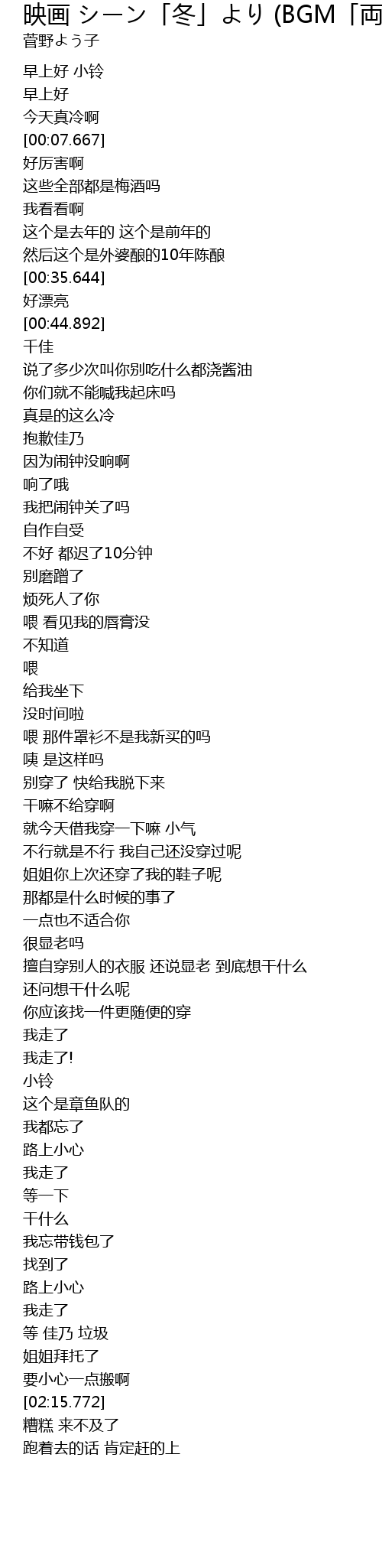 | [02:11.644] | 等 佳乃 垃圾 |