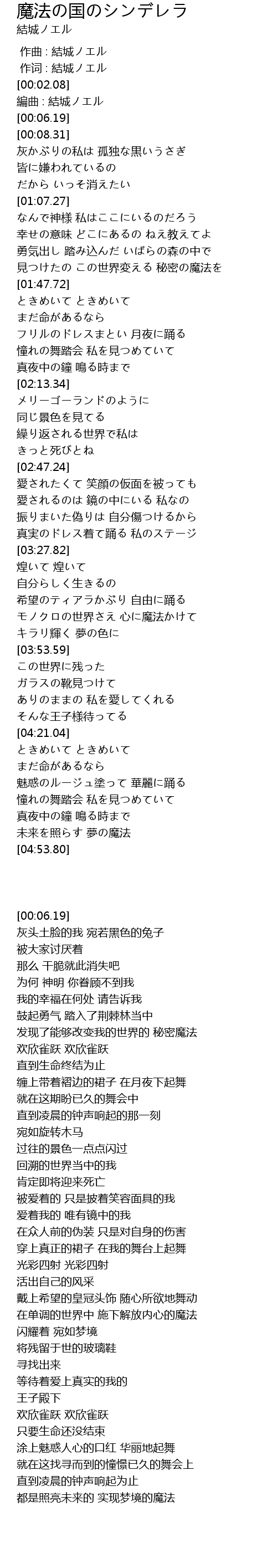 | [00:45.68] | 灰かぶりの私は 孤独な黒いうさぎ |