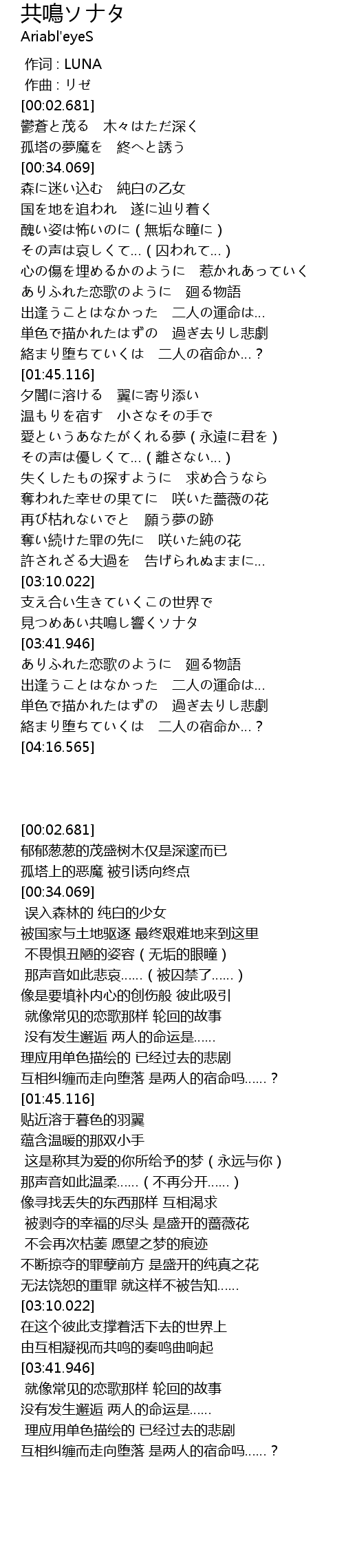 | [03:31.894] | 見つめあい共鳴し響くソナタ |