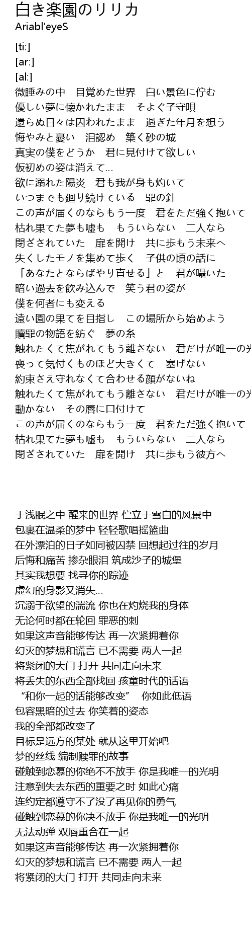 | [00:24.06] | 微睡みの中 目覚めた世界 白い景色に佇む |
