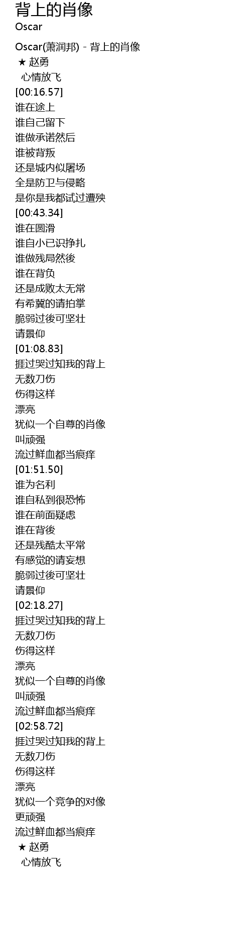| [00:01.14] | Oscar(萧润邦) - 背上的肖像 |
