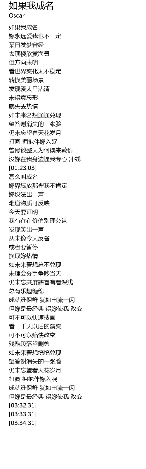 | [01:30.95] | 甚么叫成名 |