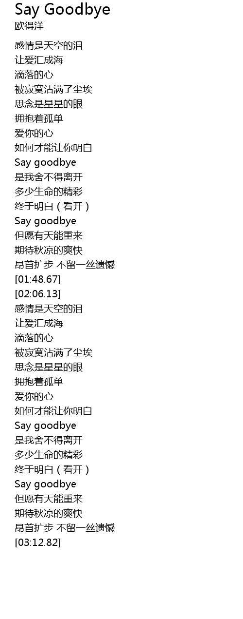 | [01:30.04] | Say goodbye |