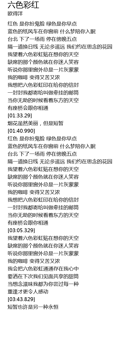 | [03:26.850] | 我会把六色彩虹通通存在我心中 |
