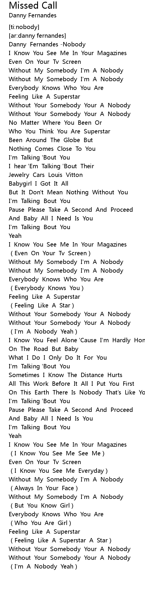 | [00:03.67] | Danny Fernandes Nobody |