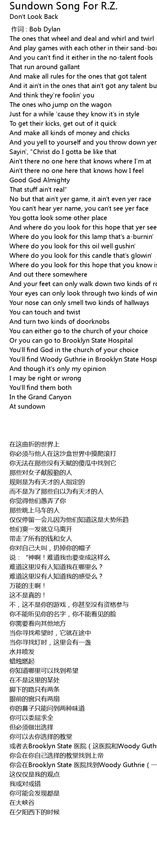 | [00:00.00] | zuo ci : Bob Dylan |