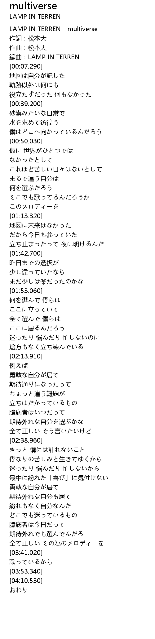 | [00:00.300] | LAMP IN TERREN - multiverse |