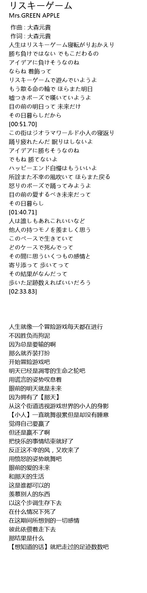 | [00:28.16] | リスキーゲームで遊んでいようよ |