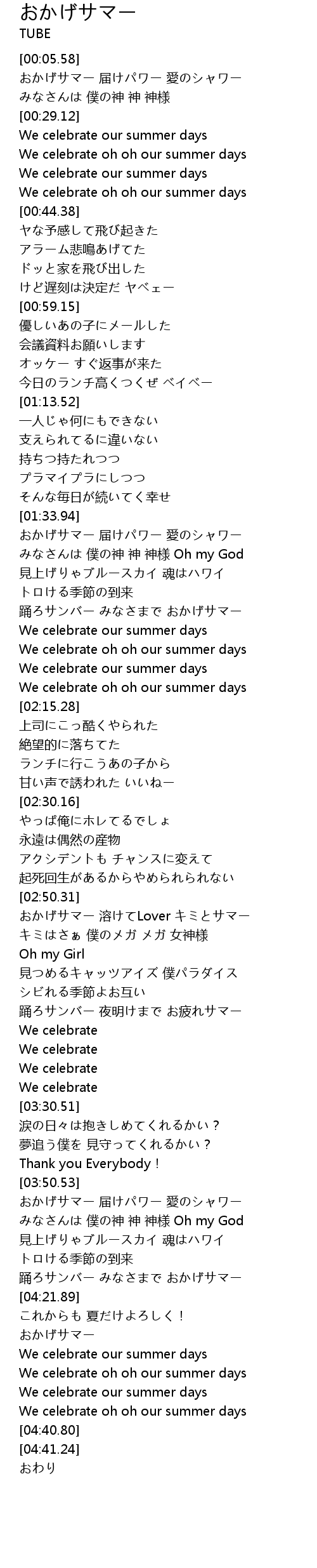 | [04:25.60] | おかげサマー |