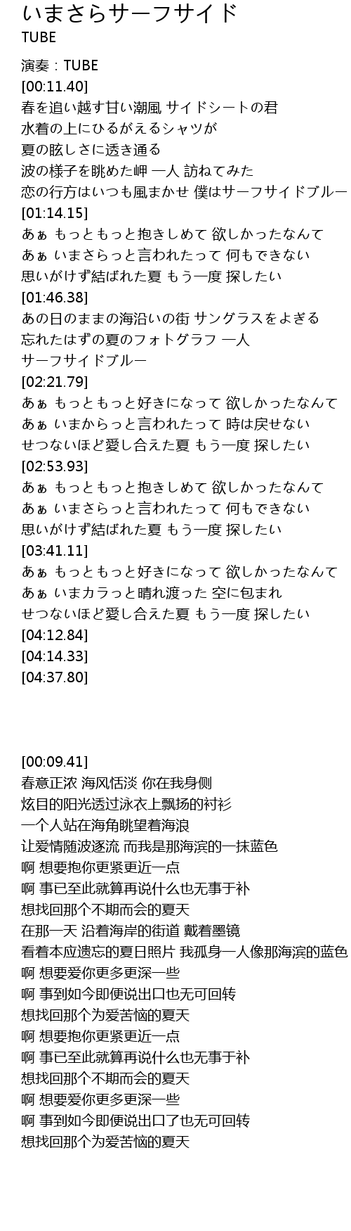 | [03:57.70] | せつないほど愛し合えた夏 もう一度 探したい |