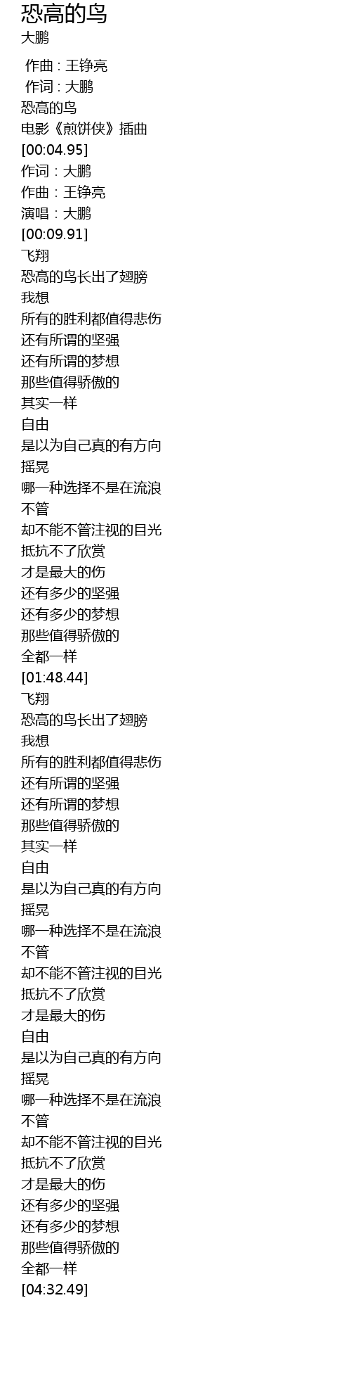 | [00:02.26] | 恐高的鸟 |