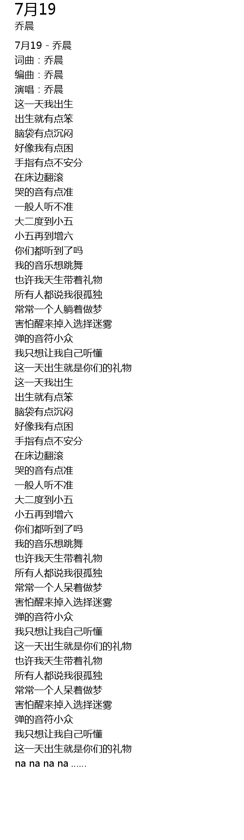 | [00:03.250] | 7 yuè 19 qiáo chén |