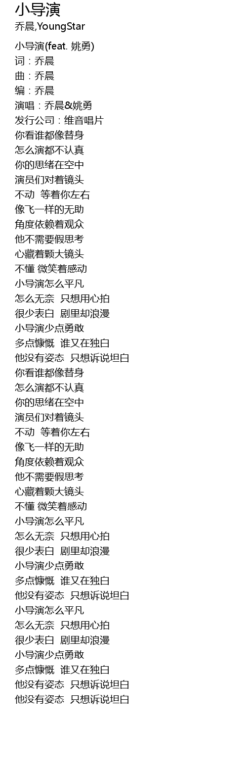 | [00:02.340] | 小导演(feat. 姚勇) |