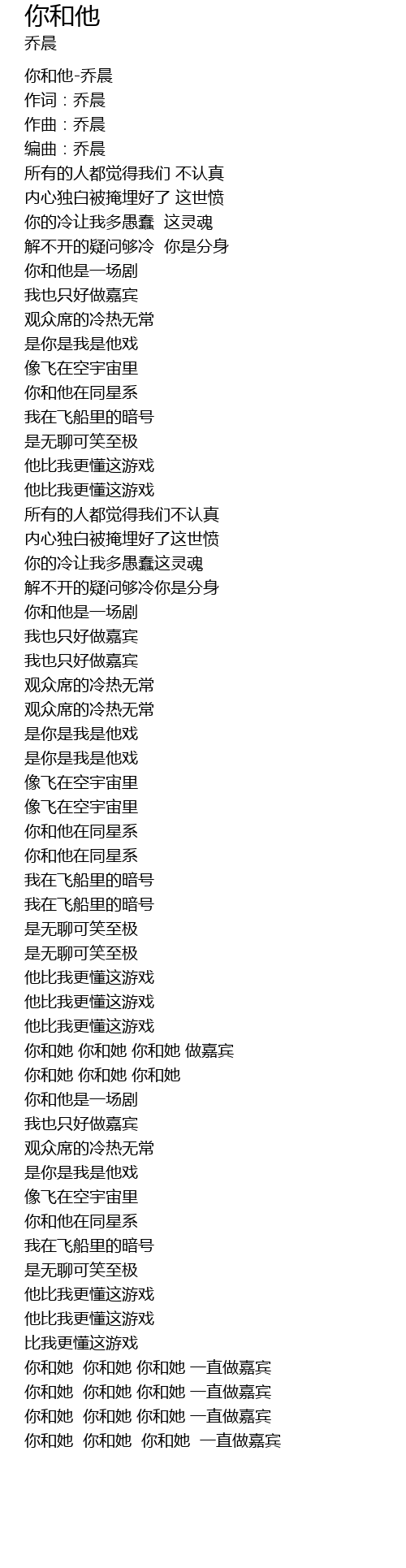| [03:28.420] | 你和她 你和她 你和她 一直做嘉宾 |