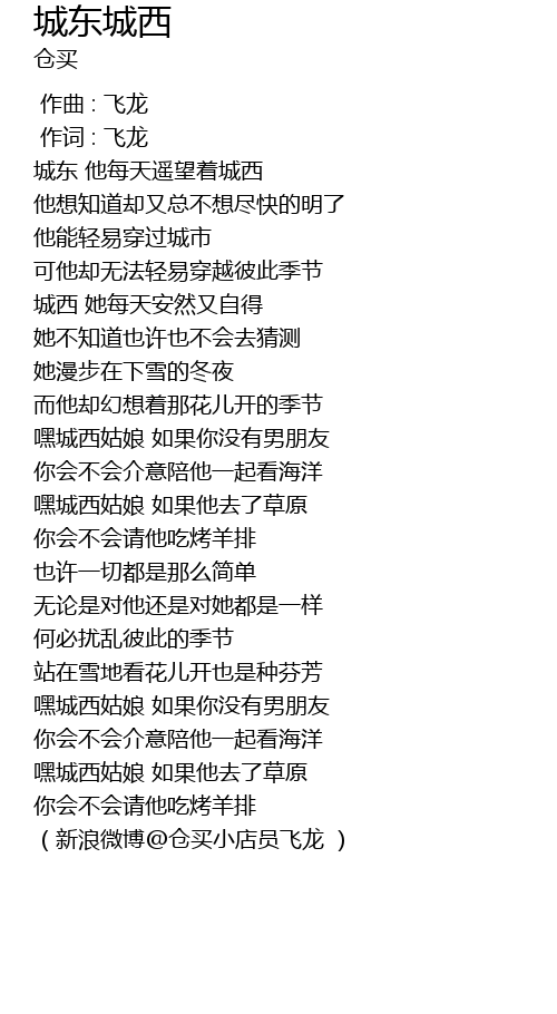 | [02:51.36] | (新浪微博@仓买小店员飞龙 ) |