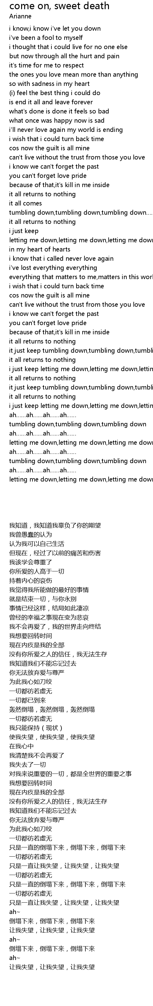 | [04:45.40] | tumbling down, tumbling down, tumbling down ah ah ah ah |