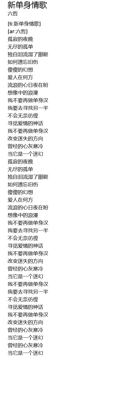 | [04:04.710] | wǒ bú yào zài zuò dān shēn hàn |