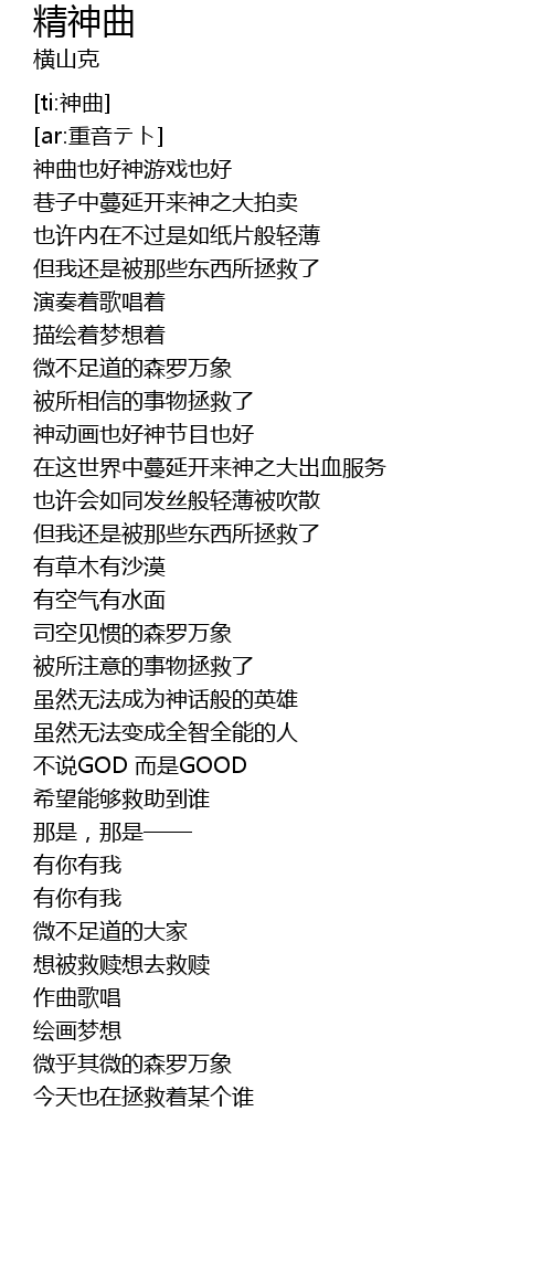 | [00:30.348] | shén qū yě hǎo shén yóu xì yě hǎo |
