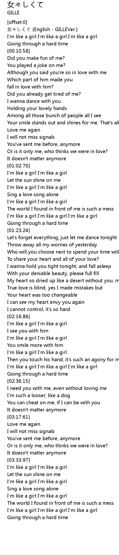 | [01:17.83] | I'm like a girl I'm like a girl I'm like a girl |