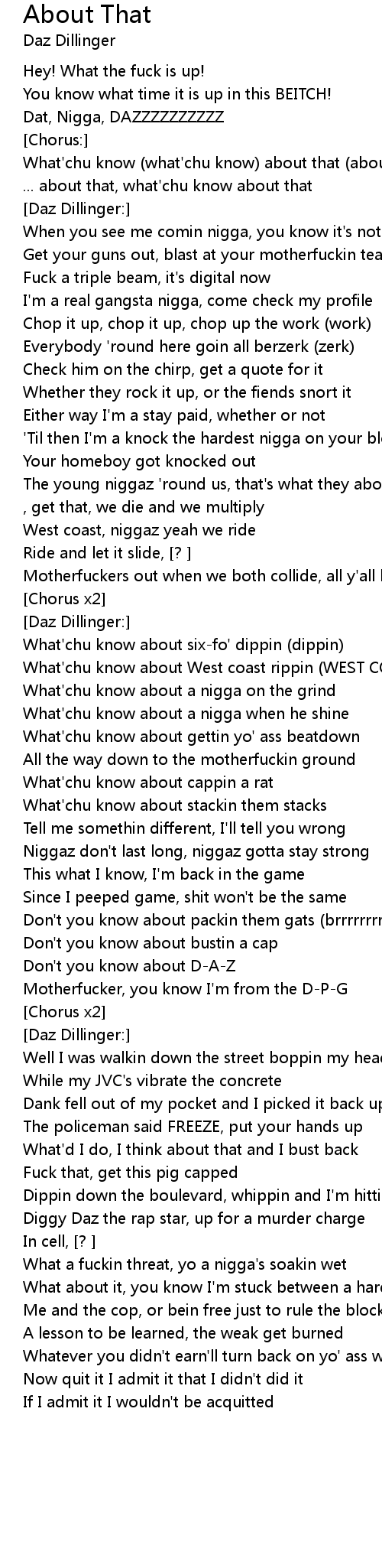 What'chu know (what'chu know) about that (about that) [x3] |