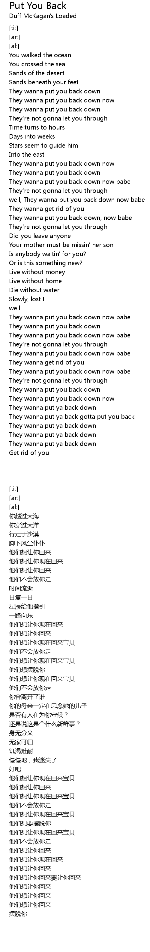 They wanna put ya back gotta put you back |
