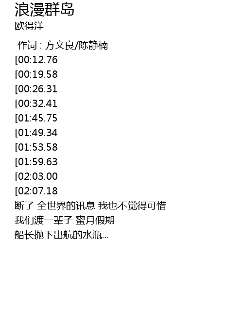 | [02:40.05][01:59.63][00:52.39] | 浪漫群岛一年四季只下花瓣雨 |