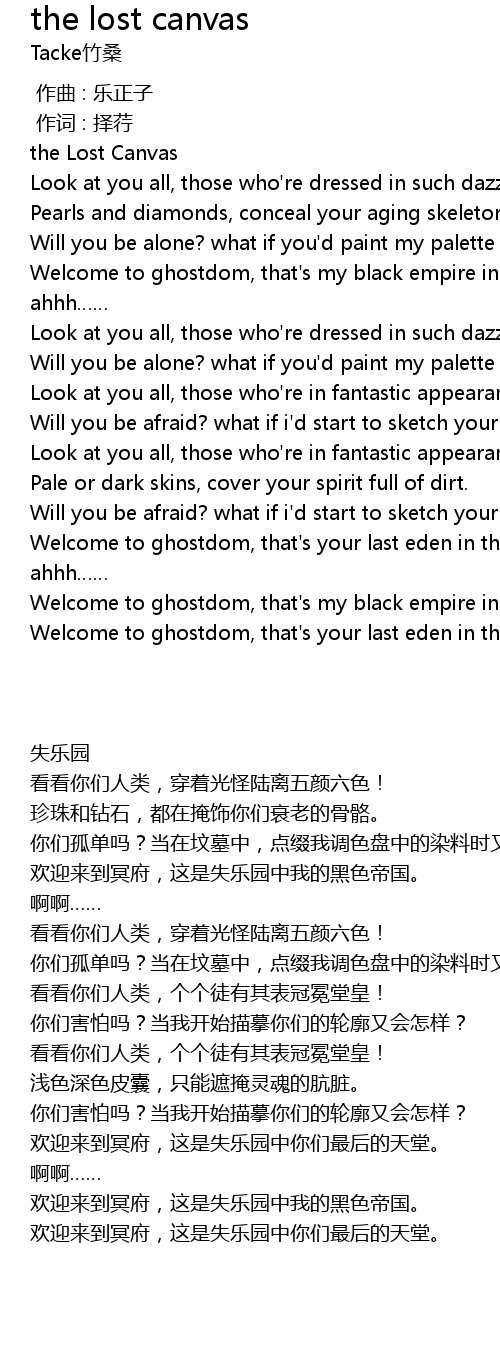 | [00:56.43] | Welcome to ghostdom, that' s my black empire in the lost canvas. |
