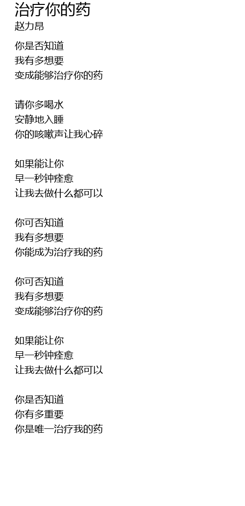 | nǐ shì wéi yī zhì liáo wǒ de yào |