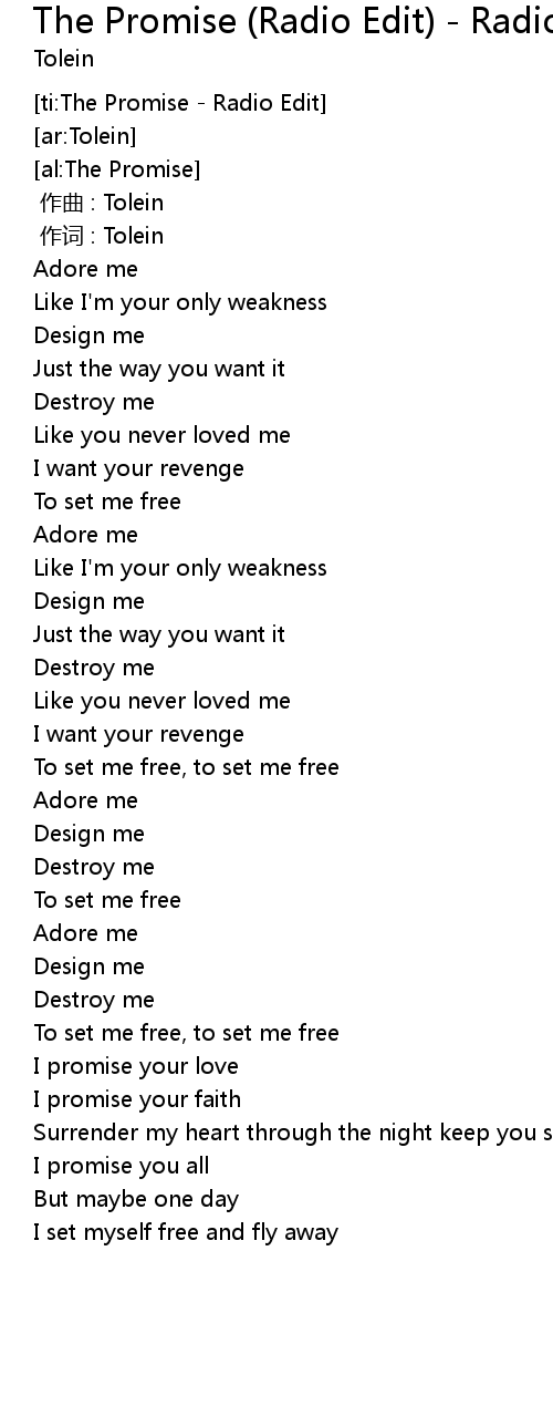 | Song | The Promise (Radio Edit) - Radio Edit |