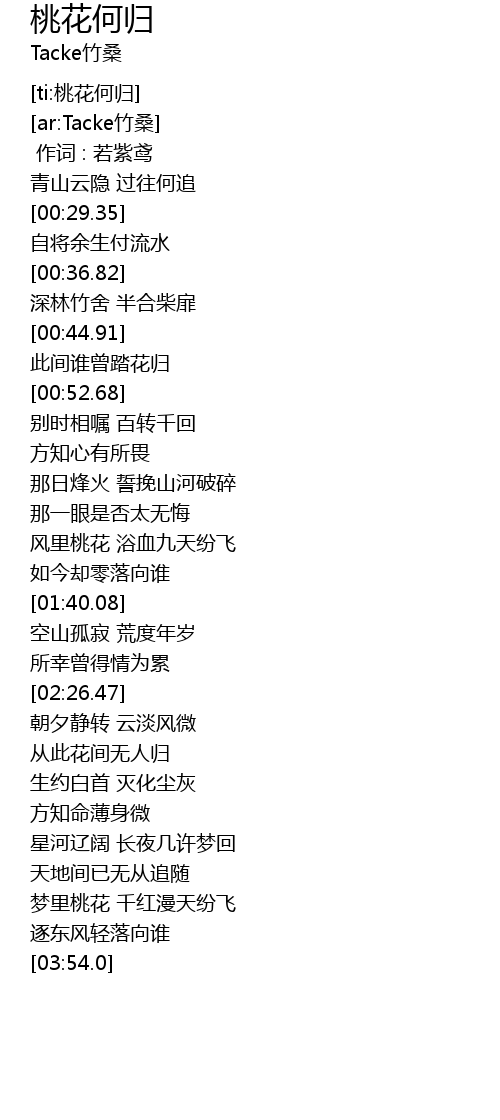 | [01:24.38] | fēng lǐ táo huā yù xuè jiǔ tiān fēn fēi |