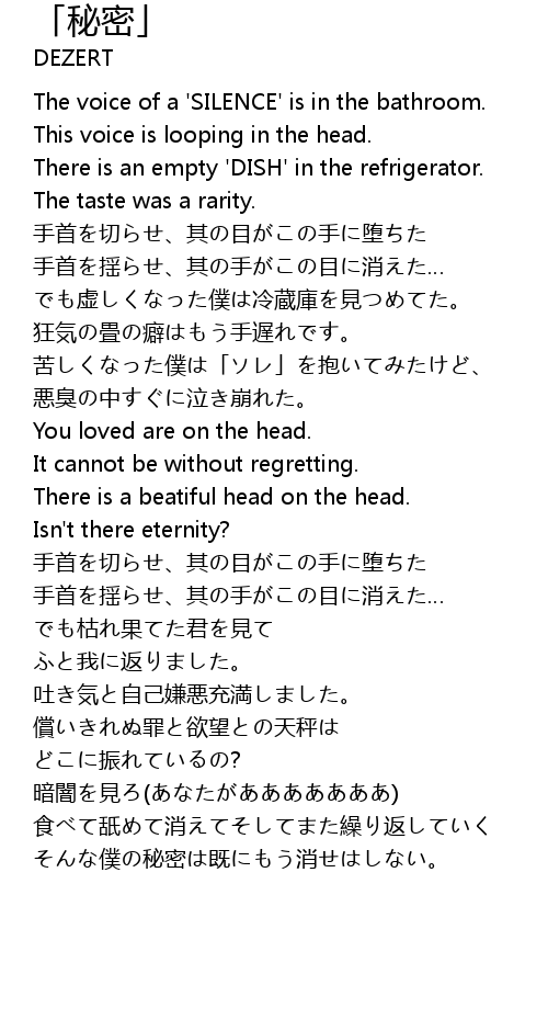 | [00:42.46] | 手首を切らせ、其の目がこの手に堕ちた |