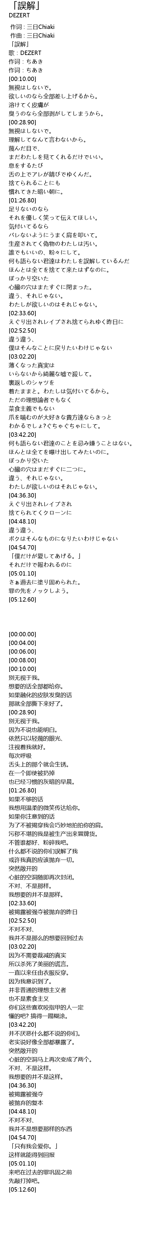 | [02:05.95] | 何も語らない君達はわたしを誤解しているんだ |