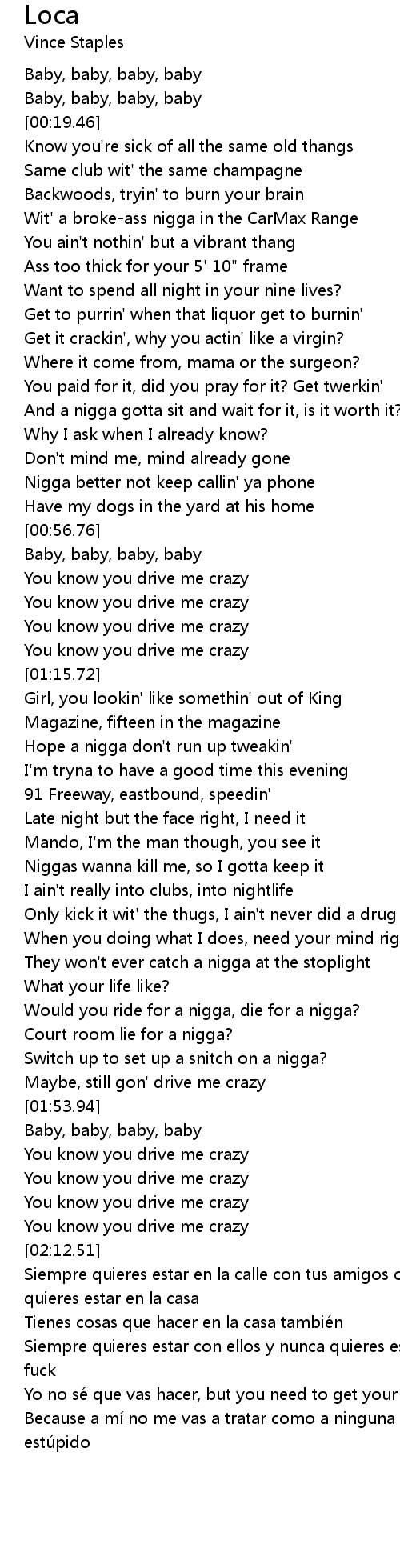 | [01:13.27] | You know you drive me crazy |