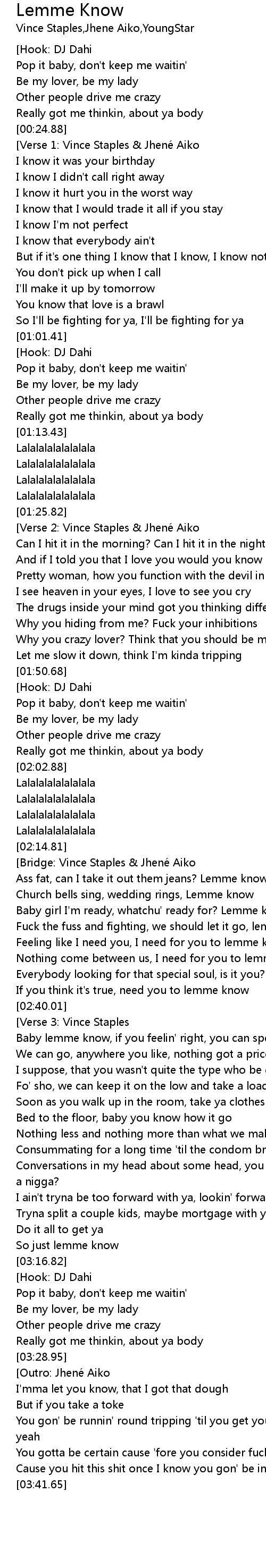 | [02:15.05][Bridge: Vince Staples & Jhené Aiko] | |