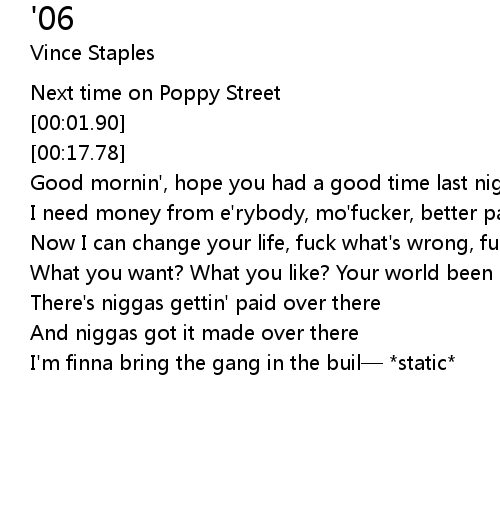 | [00:39.07] | There' s niggas gettin' paid over there |