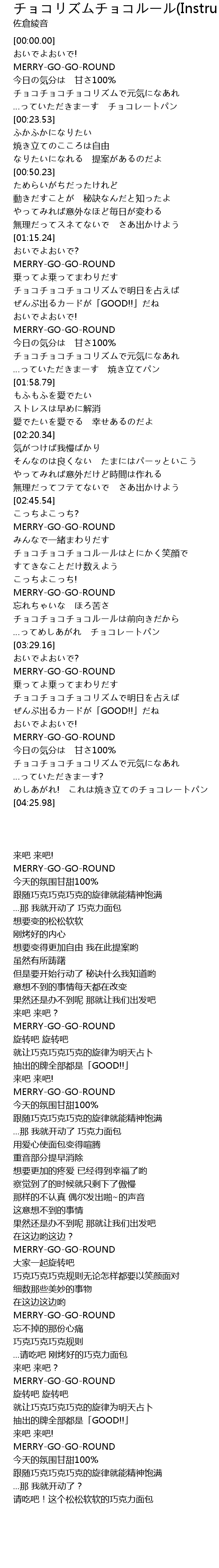 | [02:58.07] | チョコチョコチョコルールはとにかく笑顔で |