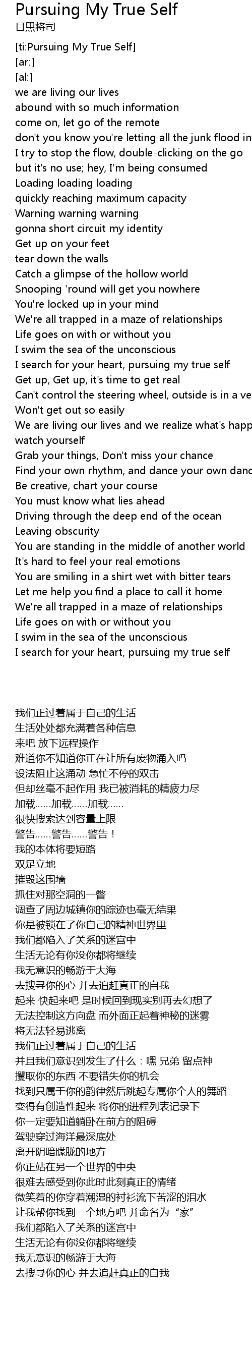| [01:08.86] | I search for your heart, pursuing my true self |
