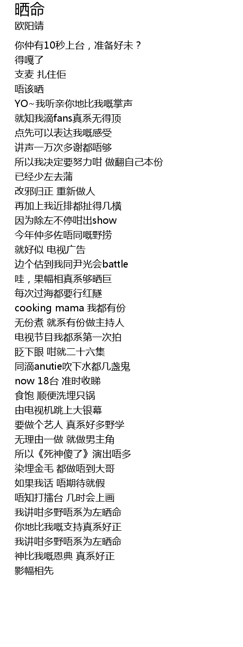 | [01:34] | wo jiang han duo ye wu xi wei zuo shai ming |