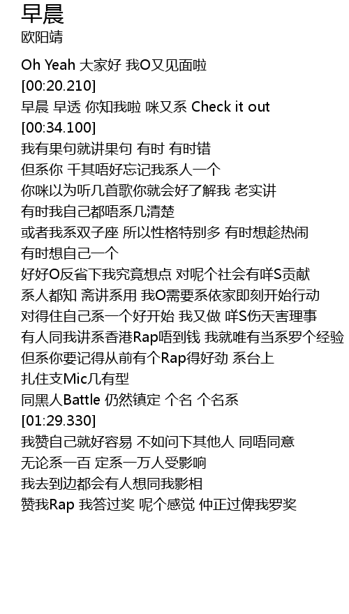 | [00:20.920] | 早晨 早透 你知我啦 咪又系 Check it out |