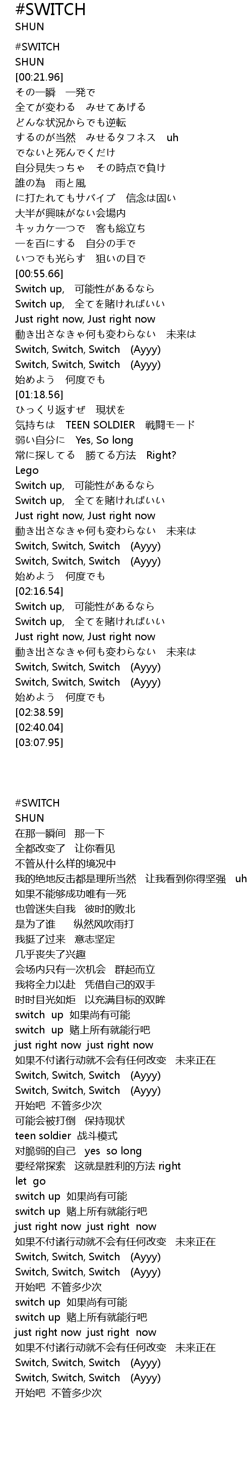 | [02:10.58] | Switch, Switch, Switch (Ayyy) |