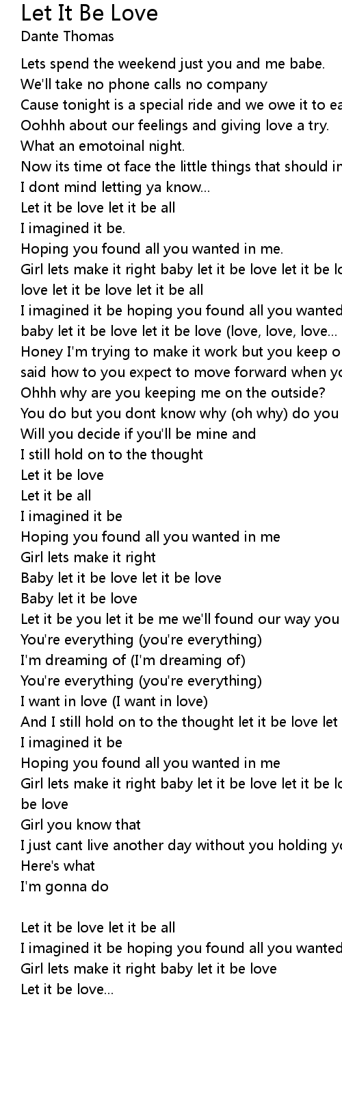 I imagined it be hoping you found all you wanted in me girl lets make it right baby let it be love let it be love (love, love, love... let it be love) |