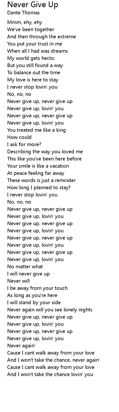 Never give up, lovin' you |