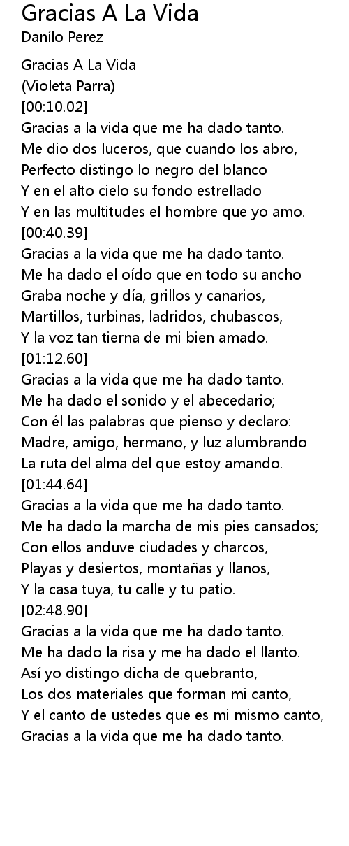 | [00:45.95] | Gracias a la vida que me ha dado tanto. |